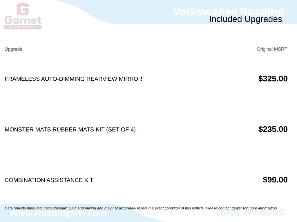 • MONSTER MATS RUBBER MATS KIT (SET OF 4) and a heavy-duty trunk liner with VW CarGo blocks