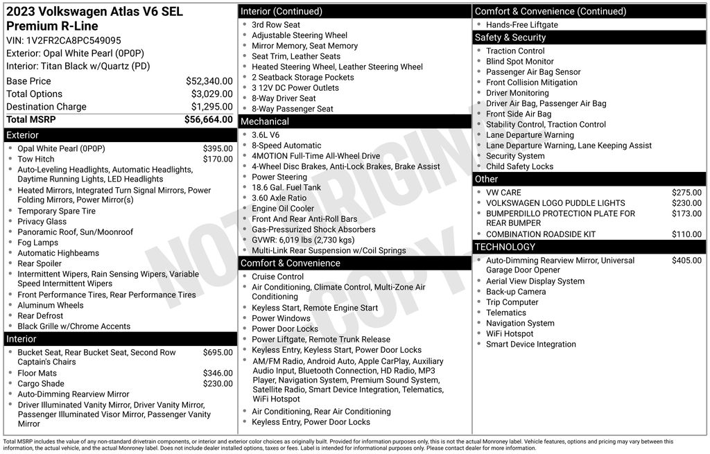 Boasting a stunning array of premium features, this Atlas is tailored to exceed your expectations. Enjoy the convenience of the 2ND-ROW DUAL CAPTAIN'S CHAIRS, the elegance of the AUTO-DIMMING REARVIEW MIRROR, and the peace of mind provided by the RUBBER MATS KIT - CAPTAIN'S CHAIRS and the VW CARE prepaid maintenance plan. The PRIVACY COVER and VOLKSWAGEN LOGO PUDDLE LIGHTS add a touch of elegance, while the TRAILER HITCH EXTRAS and COMBINATION ROADSIDE KIT ensure you're prepared for any adventure.